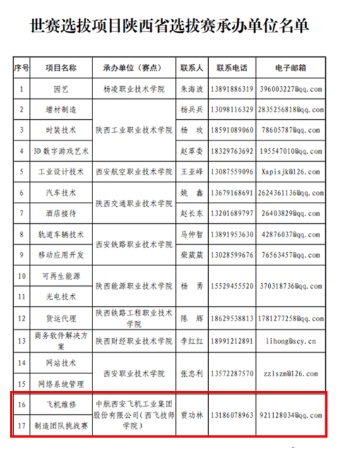根据《陕西省人力资源和社会保障厅关于做好第二届全国技能大赛陕西省选拔赛有关工作的通知》(陕人社函[2023]150号)要求,中航西安飞机工业集团股份有限公司承办第二届全国技能大赛建制造团队挑战赛、飞机维修、数控铣(国赛)陕西省选拔赛的工作,比赛拟定于2023年6月上旬举办。